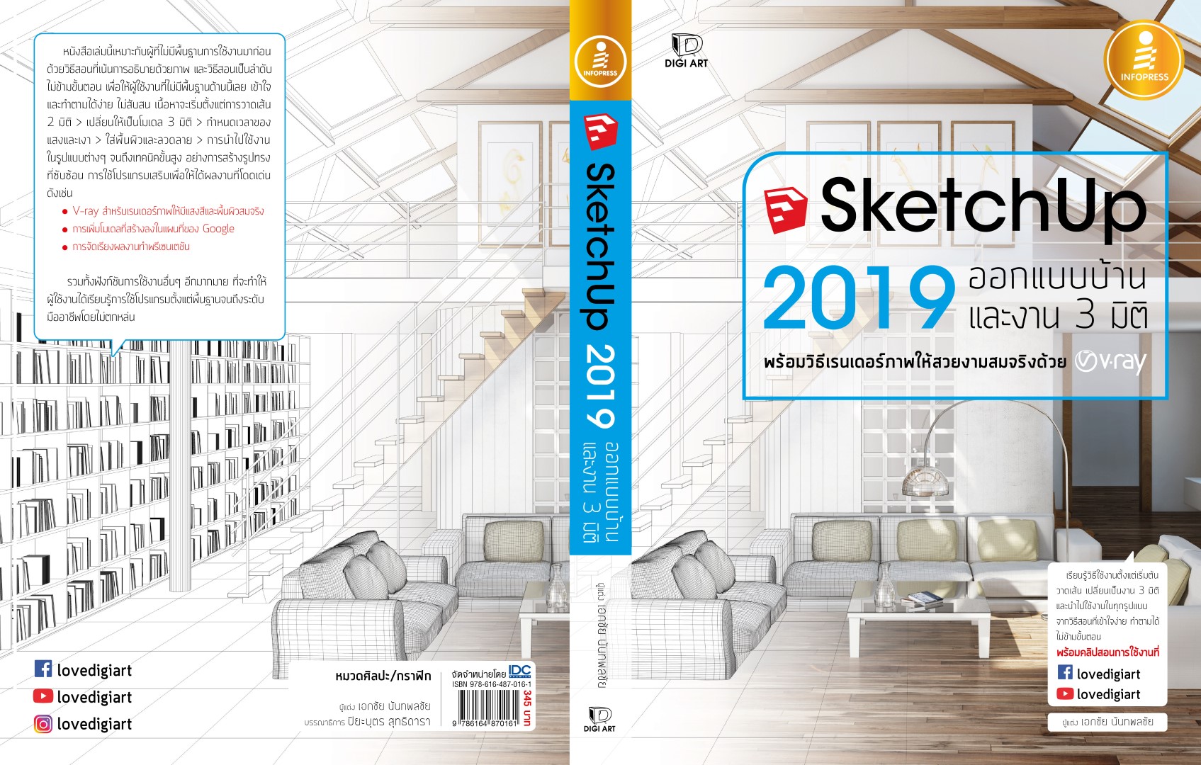 เรียนรู้การออกแบบบ้านและงาน 3 มิติ ด้วยโปรแกรม SketchUp 2019 พร้อมวิธีเรนเดอร์ภาพให้สวยงามสมจริงด้วย V-ray ตั้งแต่เริ่มต้นพื้นฐานไปจนถึงขั้นตอนการนำไปใช้งานด้านต่างๆ จากวิธีสอนที่เข้าใจง่าย ไม่ข้ามขั้นตอน ทำตามได้แม้ไม่มีพื้นฐานมาก่อน