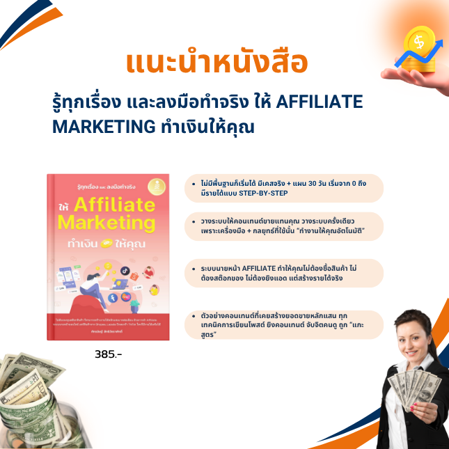 การทำนายหน้าหรือ Affiliate ถูกออกแบบมาให้คุณไม่ต้องซื้อสินค้า ไม่ต้องสต๊อกของ ไม่ต้องยิงแอด แต่สร้างรายได้จริง หากวางแผนอย่างเป็นระบบสามารถสร้างรายได้หลักแสนต่อเดือนได้จริงๆ เข้าใจการระบบให้คอนเทนต์ขายแทนคุณ วางระบบครั้งเดียว เพราะเครื่องมือ + กลยุทธ์ที่ใช้นั้น “ทำงานให้คุณอัตโนมัติ” แม้ในเวลาที่คุณหลับหรือปิดมือถือ สูตรการโพสต์ + ตัวอย่างคอนเทนต์ที่เคยสร้างยอดขายหลักแสน ทุกเทคนิคการเขียนโพสต์ ยิงคอนเทนต์ จับจิตคนดู ถูก “แกะสูตร” และรวมไว้ในเล่มนี้ พร้อมใช้ได้ทันที