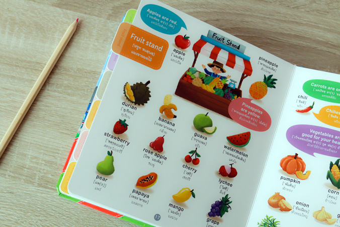 หนังสือคำศัพท์ภาษาอังกฤษแบบบอร์ดบุ๊คแข็งแรงทนทาน ขนาดกำลังเหมาะไม่หนักจนเกินไป รวบรวมคำศัพท์แยกเป็นหมวดๆ จำง่าย เข้าใจง่าย พร้อมคำอ่านภาษาไทยช่วยให้เรียนรู้ได้เร็วยิ่งขึ้น ภาพประกอบน่ารักสนุกสนาน ดึงดูดใจให้จดจำ