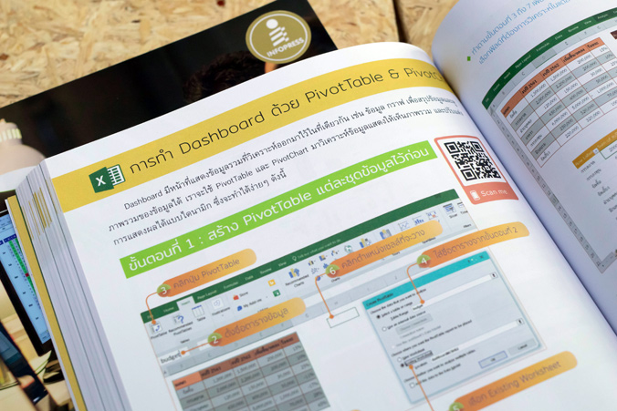 คู่มือการใช้งาน Excel เน้นการใช้ที่พบได้ในงานที่ใช้บ่อยๆ เหมาะสำหรับผู้ที่มีพื้นฐานมาแล้ว แต่ต้องการเน้นเทคนิคพวกสูตรและฟังก์ชันที่ซับซ้อนยิ่งขึ้น การวางแผนเก็บข้อมูล, จัดการข้อมูล, สูตรคำนวณ, กราฟ, PivotTable, PivotChart, Slicer และการทำงานแบบ