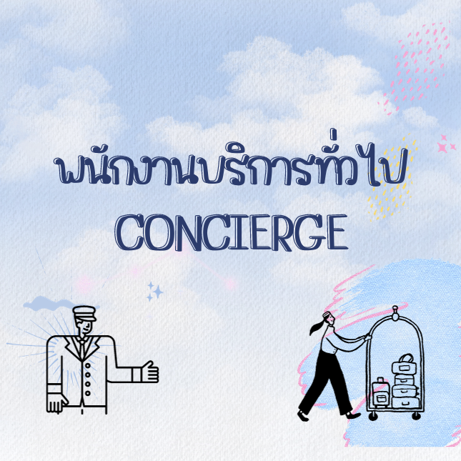 พนักงานบริการทั่วไป(Concierge) ทำหน้าที่ ต้อนรับลูกค้าที่มาติดต่อทั้งคนไทยและต่างชาติได้ ดูแลการจองห้องพัก รับโทรศัพท์ ประสานงานกับหน่วยงานภายใน เช่น ช่วยลูกค้ายกสัมภาระไปที่ห้อง นำทางลูกค้าไปที่ห้องพัก