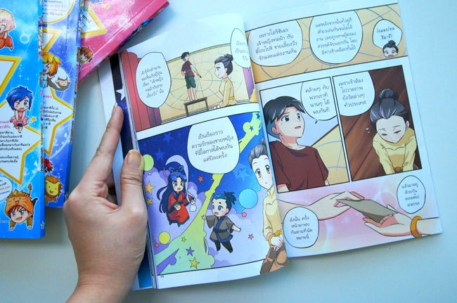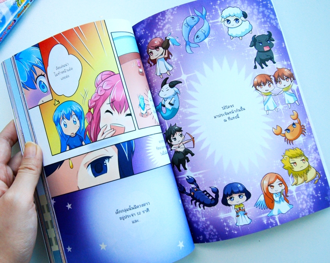 หนังสือการ์ตูน “Sweet Pop ปริศนาป่วน ก๊วน 12 ราศี” ทั้ง 5 เล่ม บอกเลยค่ะว่าอ่านจนลืมเวลา อ่านเพลินมาก (และไม่สามารถหยุดอ่านได้ ฮ่า ๆ ) คงเป็นเพราะมีเรื่องราวของเราเกี่ยวพันอยู่กับราศีเกิดด้วย