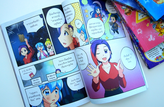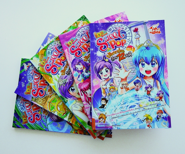 หนังสือการ์ตูนเซต “Sweet pop ปริศนาป่วน ก๊วน 12 ราศี” ทั้ง 5 เล่ม เป็นเรื่องราวของไอดอล 12 คน 12 ราศี ที่ต้องมาพัวพันกับเรื่องโชคชะตาที่คาดไม่ถึง เกิดเรื่องวุ่นวายขึ้นมากมาย นอกจากนั้นยังมีเกร็ดความรู้เกี่ยวกับ
