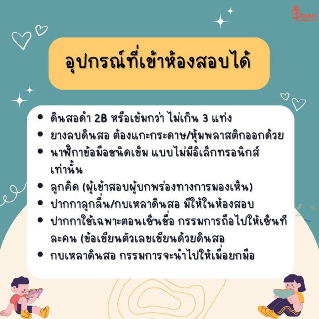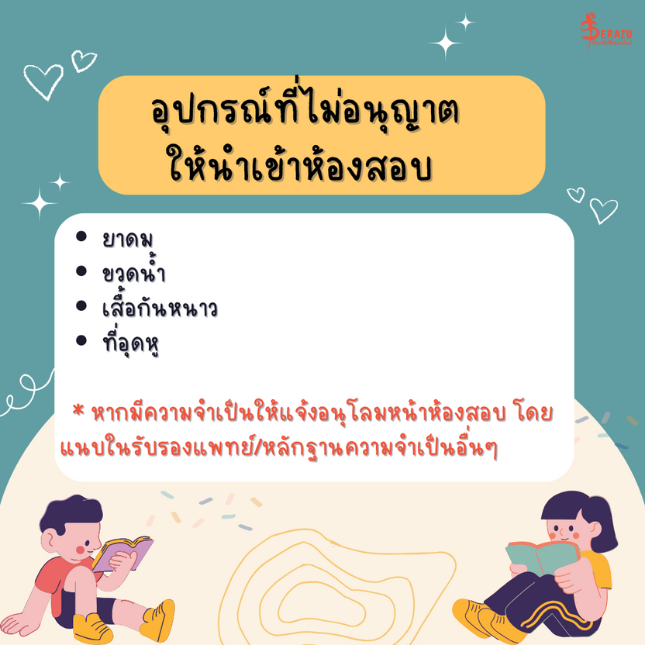 - ปากกาลูกลื่น/กบเหลาดินสอ มีให้ในห้องสอบ