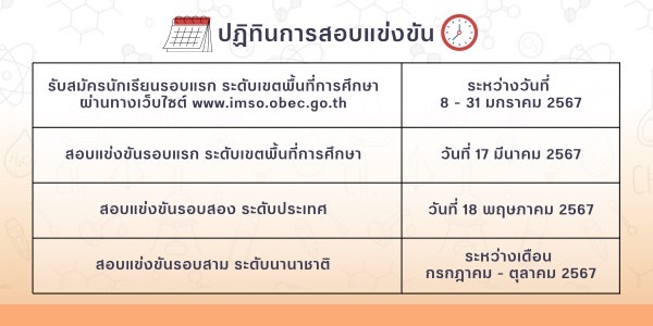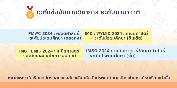 หมายเหตุ : นักเรียนสมัครสอบแข่งขันพร้อมกันทั่วประเทศโดยสมัครผ่านทางโรงเรียนเท่านั้น