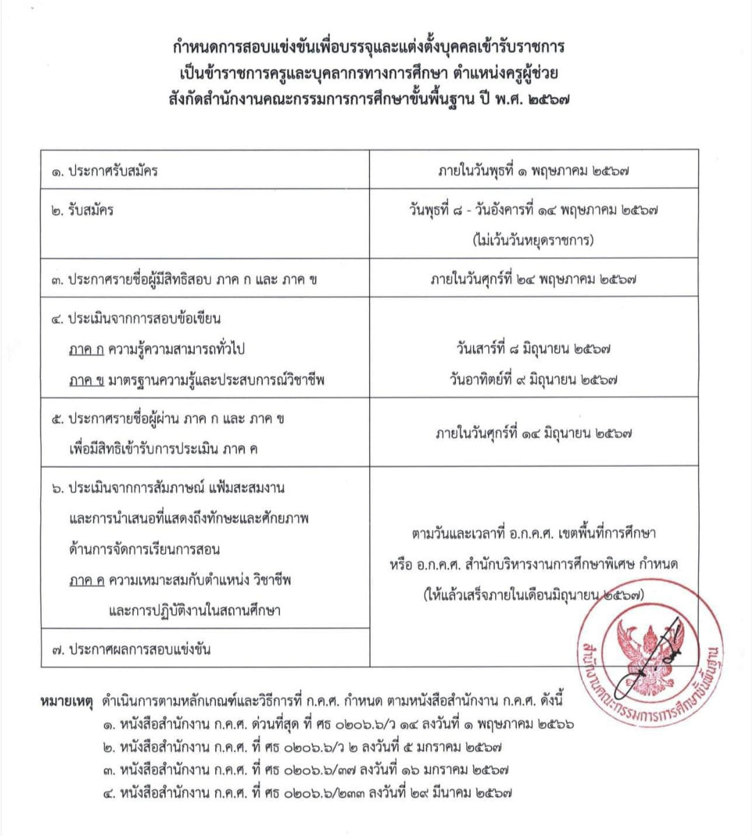 กำหนดการสอบ ครูผู้ช่วย สพฐ. รอบทั่วไป ปี2567