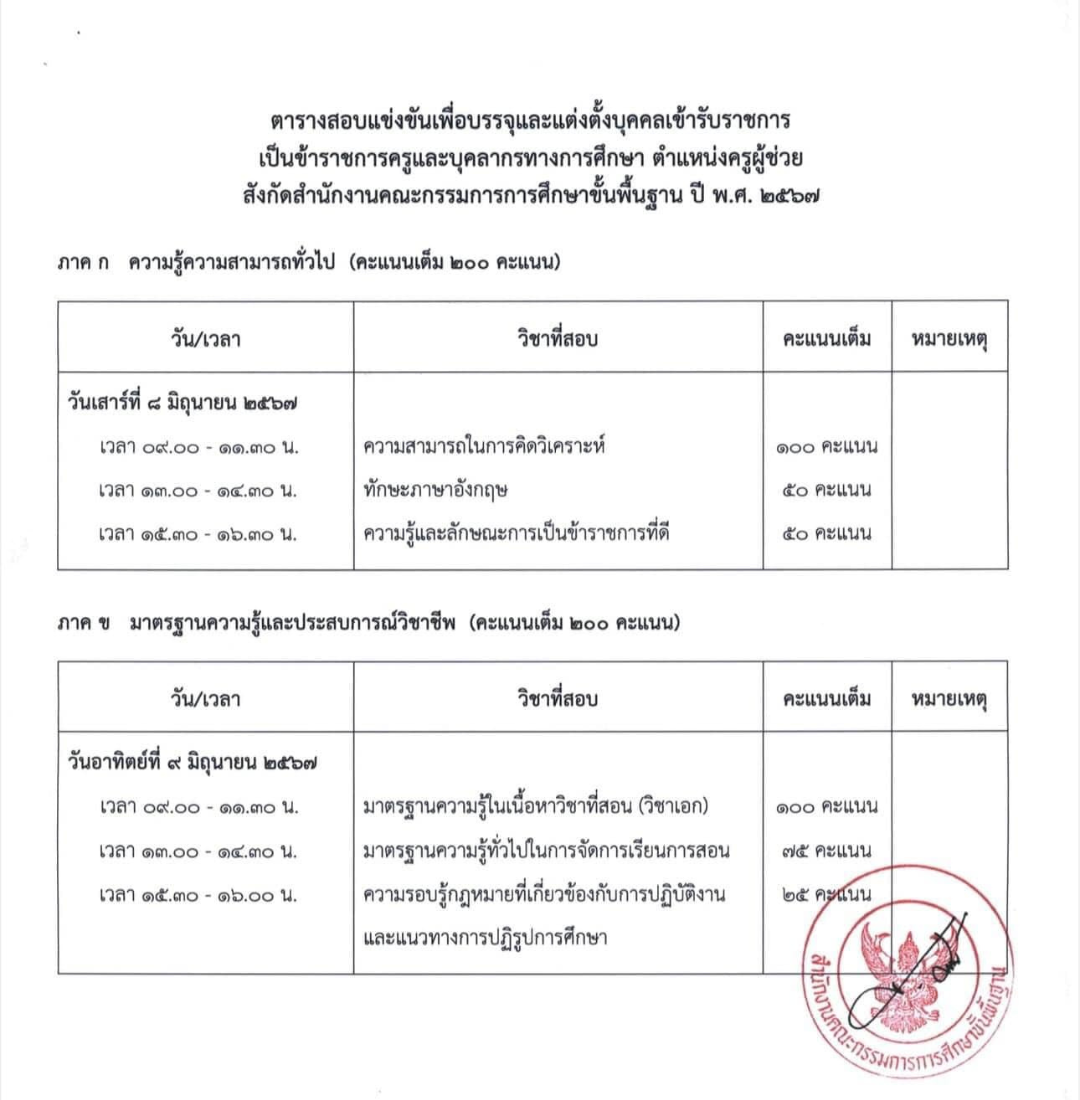 - สอบภาค ก. และ ภาค ข. 8-9 มิ.ย. 67