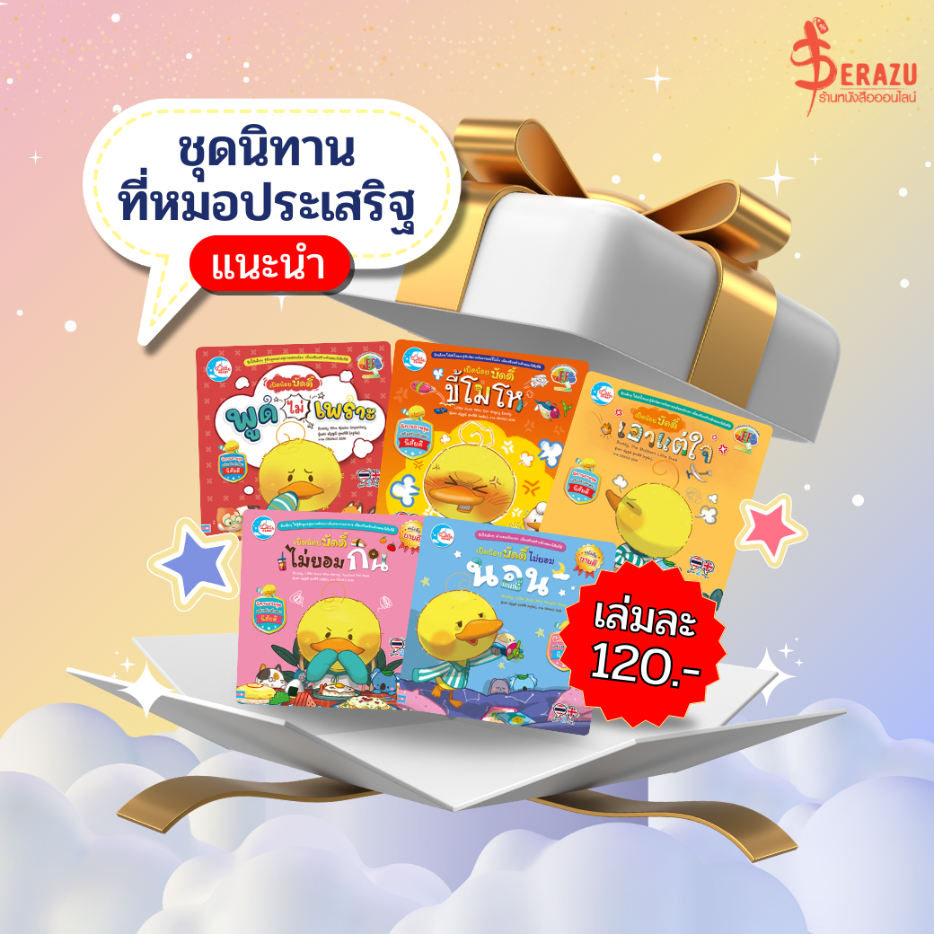 เซตนิทานเป็ดน้อยบัดดี้ ตัวช่วยให้เด็กๆนิสัยดีขึ้นได้ มาพร้อมกับภาษาอังกฤษ ช่วยให้เรียนรู้ภาษาไปในตัวเป็นนิทานที่คุณหมอประเสริฐ ผลิตผลการพิมพิ์แนะนำให้อ่าน มีเคล็ดลับคุณพ่อคุณแม่ให้ภายในเล่ม
