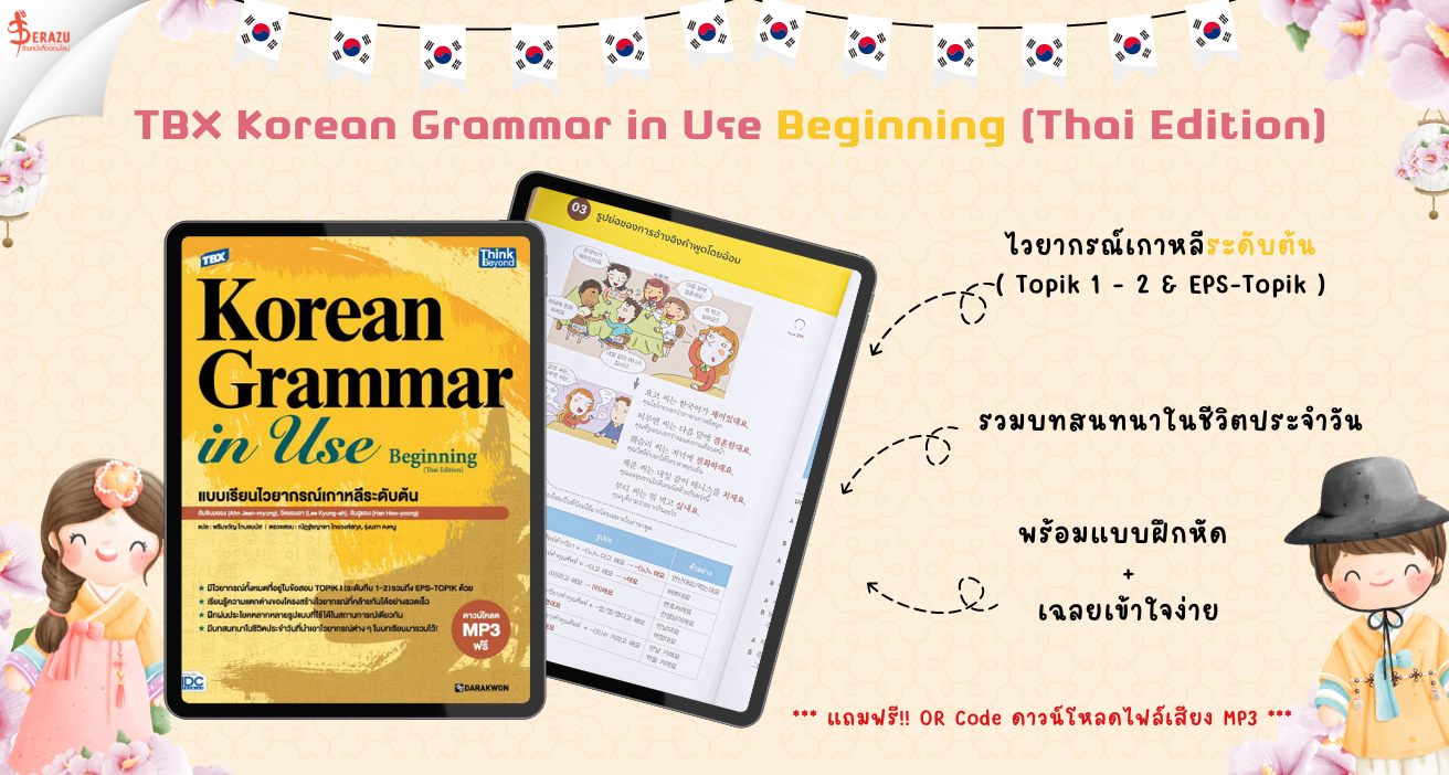 ปลดล็อกศักยภาพภาษาเกาหลีของคุณ เริ่มต้นก้าวแรกสู่ความสำเร็จกับหนังสือไวยากรณ์ที่ครบถ้วน เข้าใจง่าย เหมาะสำหรับคนที่อยากศึกษาเรียนรู้เกี่ยวกับภาษาและไวยากรณ์เกาหลีนะคะ