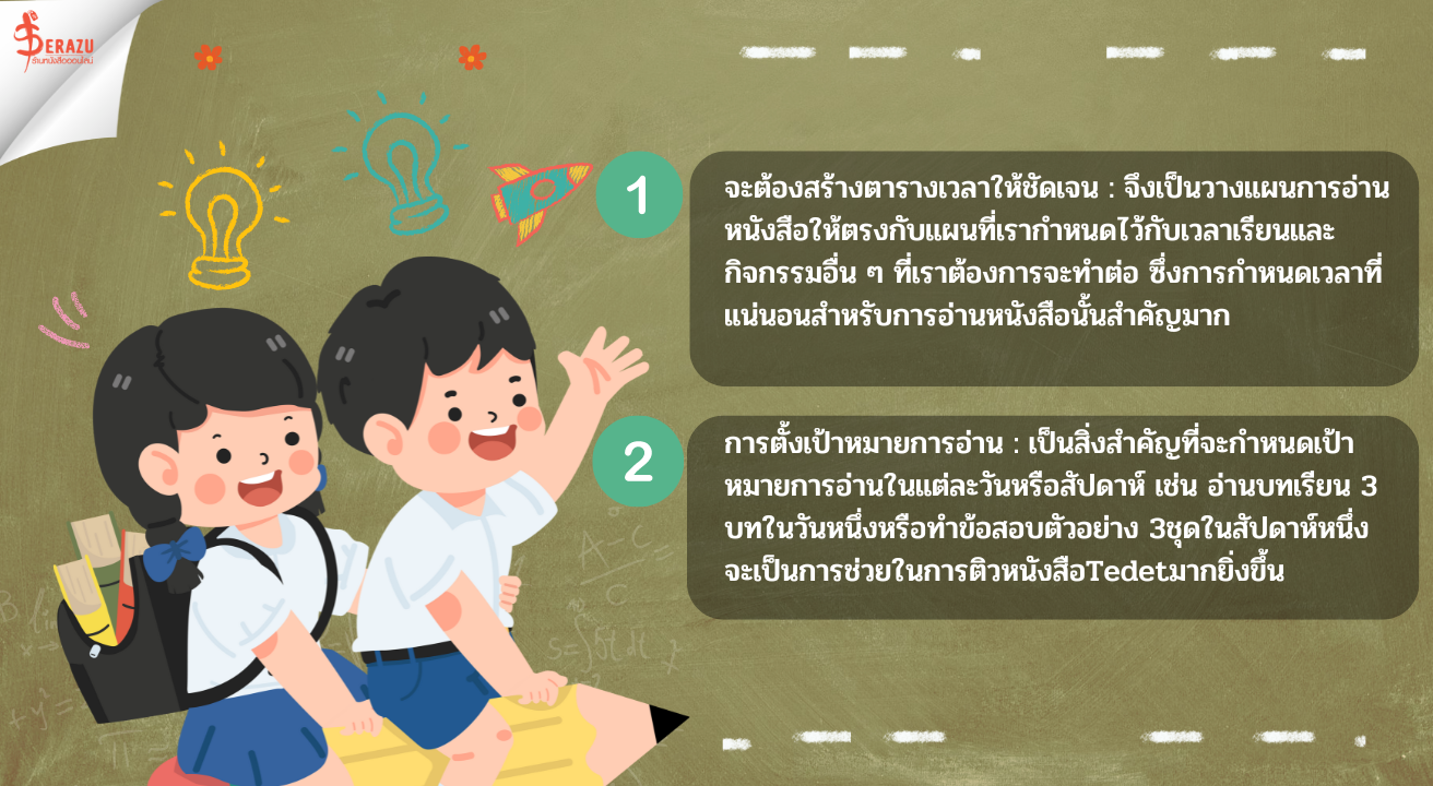 การที่จะเตรียมตัวสอบเป็นช่วงเวลาที่หลายๆ คนต่างประสบปัญหาและเกิดความท้าทายสำหรับนักเรียนทุกคนที่กำลังจะเตรียมตัวสอบ TEDET จะต้องมีการวางแผนอ่านหนังสือที่ดีนั้นจึงเป็นปัจจัยสำคัญในการอ่านหนังสือเพื่อเตรียมตัวสอบ ภายในบทความนี้จะแนะนำเทคนิคและกลยุทธ์ที่มีประสิทธิภาพในการอ่านหนังสือเพื่อความสำเร็จในการสอบ TEDET