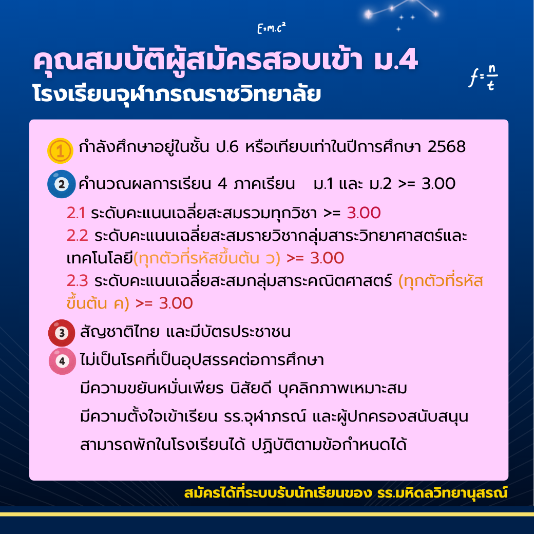 โรงเรียนวิทยาศาสตร์จุฬาภรณราชวิทยาลัย 18 เเห่ง เปิดรับสมัครนักเรียนเข้า ม.4 ปีการศึกษา 2569