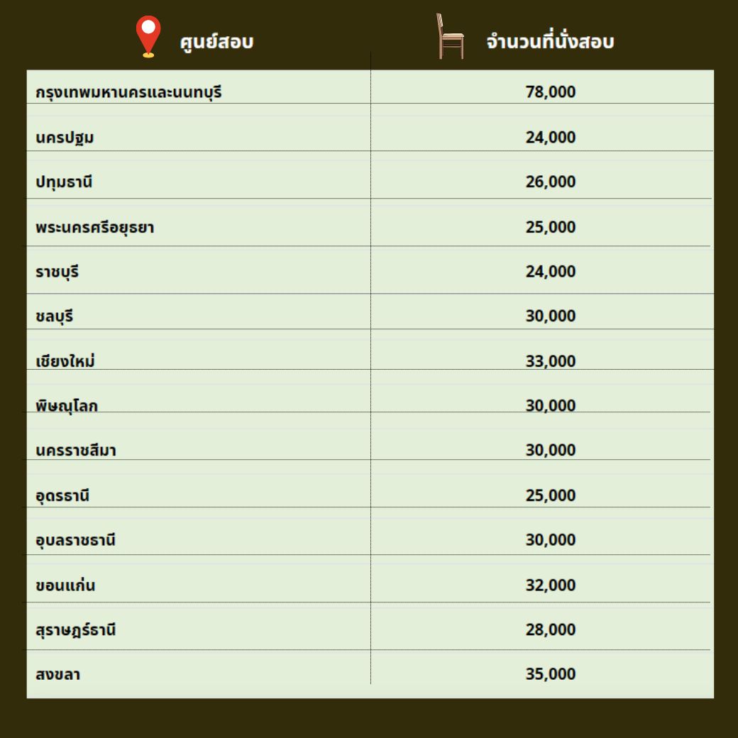 จำนวน 450,000 ที่นั่งสอบ และมีศูนย์สอบ 14 แห่ง