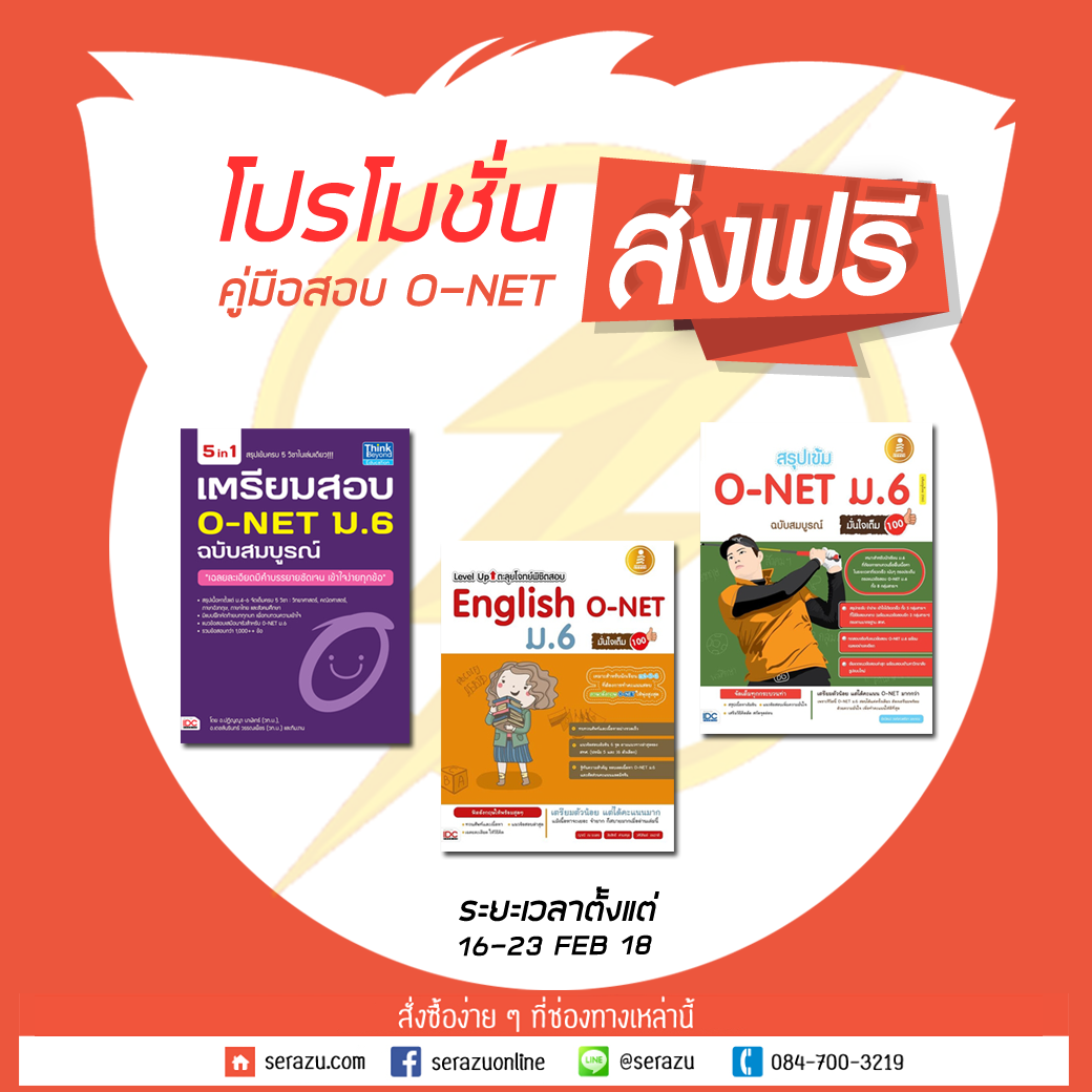 เด็ก ม.6 ให้เตรียมสอบ O-NET ได้อย่างมั่นใจเกิน 100% ด้วยการส่งฟรีเมื่อซื้อหนังสือเตรียมสอบ O-NET ม.6