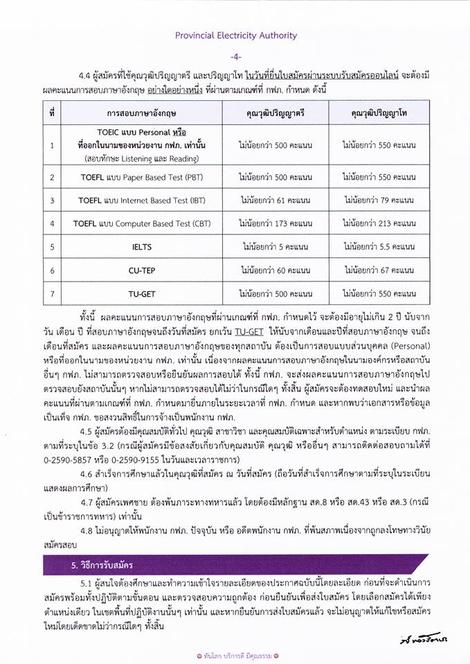 3. ผู้สมัครในตำแหน่ง คุณวุฒิปริญญาตรี ต้องมีผลคะแนนทดสอบภาษาอังกฤษ (อย่างใดอย่างหนึ่ง)