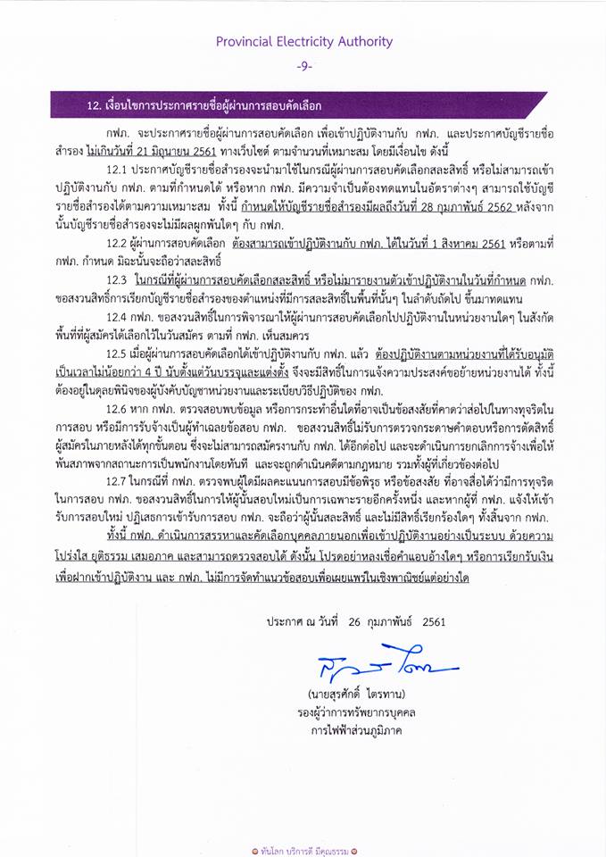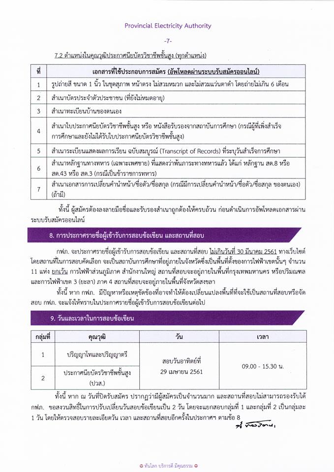 การไฟฟ้าส่วนภูมิภาค เตรียมเปิดรับสมัครสอบเพื่อเข้าปฏิบัติงานกับการไฟฟ้าส่วนภูมิภาค ประจำปี 2561 จำนวน 400 อัตรา สมัครทางอินเตอร์เน็ต ตั้งแต่วันที่ 5 - 11 มีนาคม 2561