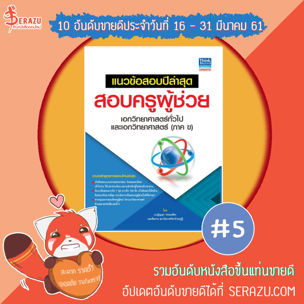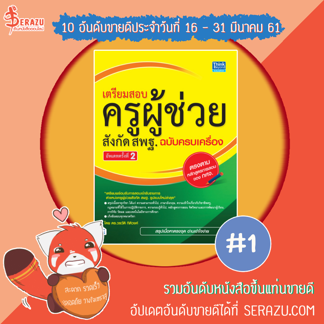 หนังสือเตรียมสอบครูผู้ช่วยที่หลายคนเฝ้ารอ ในที่สุดก็มาแล้วนะจ๊ะ เมื่อมาแล้วก็ยอดสั่งซื้อถล่มจริง ๆ จ๊ะ นี่ขนาดมาช่วงท้าย ๆ เดือนนะ ยังติด 1 ใน 10 คิดดู!!!
