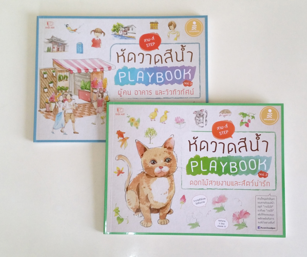 รีวิวหนังสือ "หัดวาดสีน้ำ Playbook Vol.2 ดอกไม้สวยงาม สัตว์น่ารักและ Vol.3 ผู้คน อาคาร และวิวทิวทัศน์"