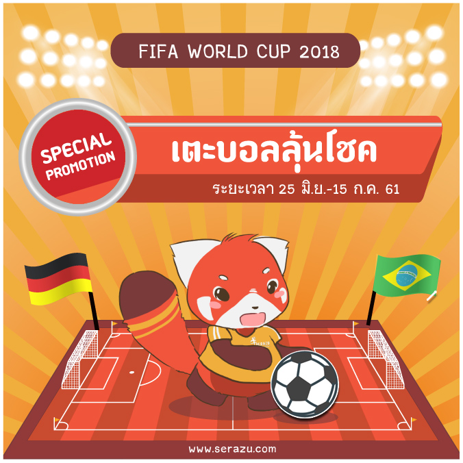 เซราสุจัดแคมเปญเตะบอลลุ้นโชค FIFA World Cup 2018 ด้วยการให้แฟนๆ ลุ้นรับโชคกับโค๊ดส่วนลดพิเศษเลือกช็อปให้สนั่นทุกเล่ม ทุกรายการในเว็บเซราสุ ไปร่วมเตะบอลลุ้นโชคกันเลยย...