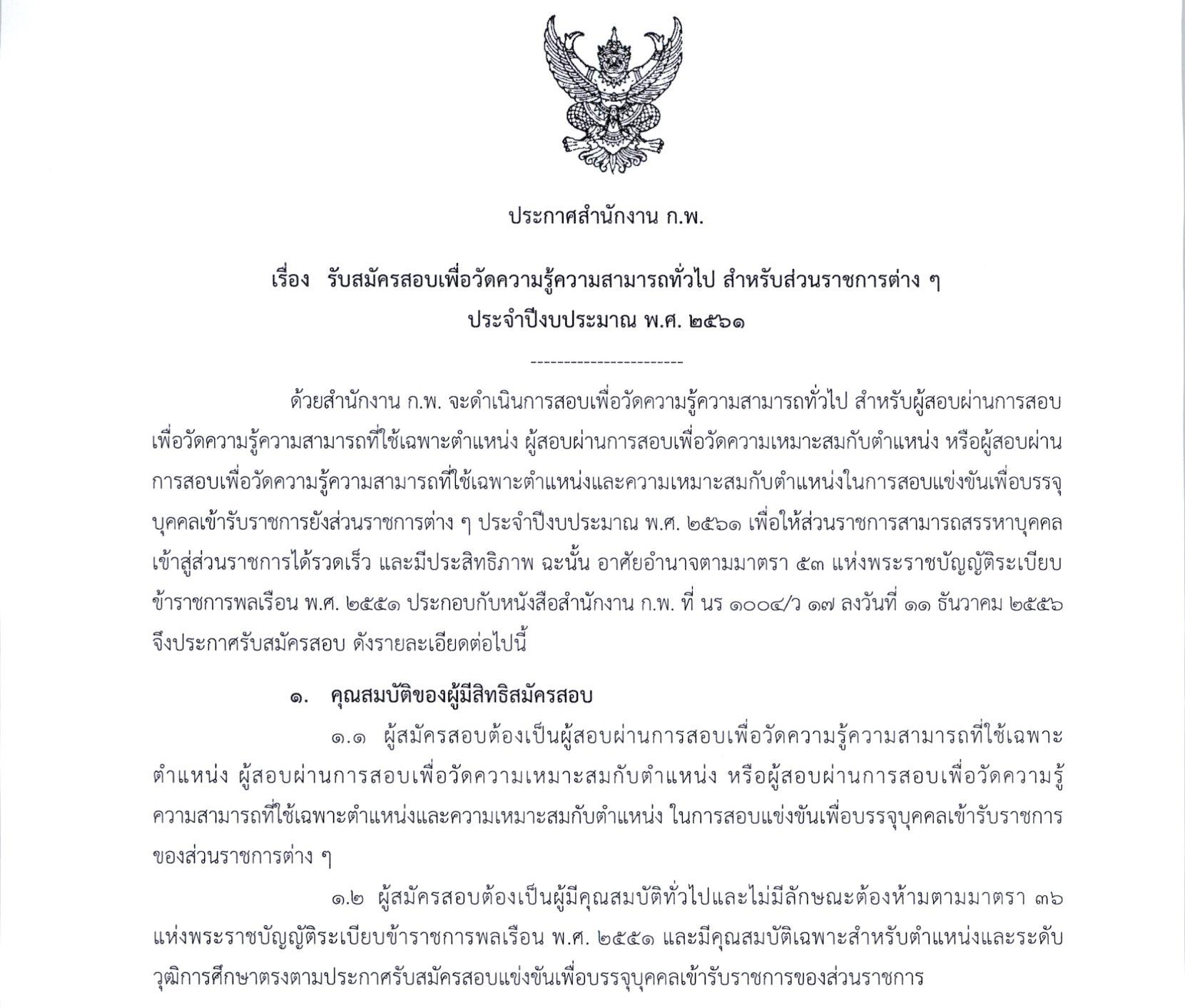 ประกาศสำนักงาน ก.พ. เรื่อง รับสมัครสอบเพื่อวัดความรู้ความสามารถทั่วไป สำหรับส่วนราชการต่าง ๆ