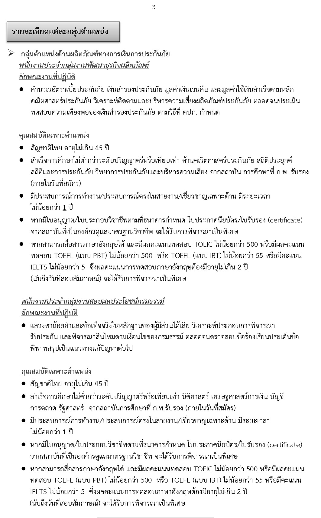 - กลุ่มตำแหน่งด้านผลิตภัณฑ์ทางการเงินการประกันภัย