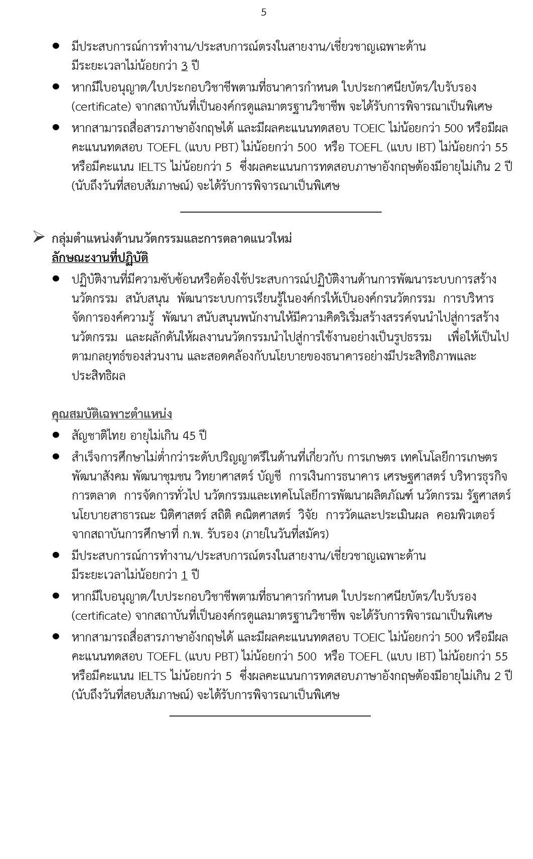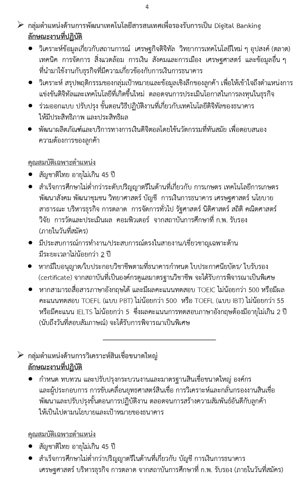- กลุ่มตำแหน่งด้านการพัฒนาเทคโนโลยีสารสนเทศเพื่อรองรับการเป็น Digital Banking