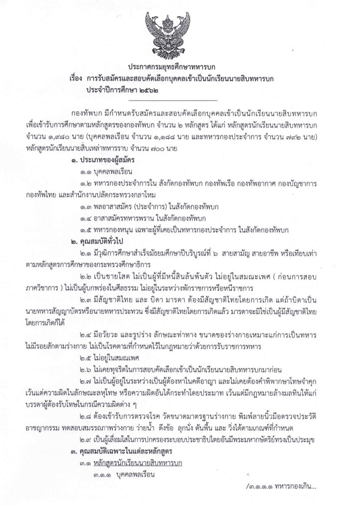 เปิดรับสมัครสอบนักเรียนนายสิบทหารบก 2,680 อัตรา ปี2562 หน้า 1