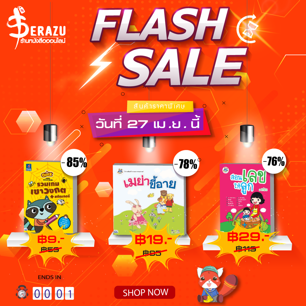 โอ้ยยย! คุ้มซะยิ่กว่าคุ้ม โปรโมชั่น Flash Sale เซราสุจัดหนักให้แบบจุใจ ถ้าไม่อยากให้ความคุ้มค่านี้หลุดมือไป ก็พุ่งตัวไปช้อปให้ไวในช่วงเวลาที่กำหนด อย่าลืมว่าหนังสือดีๆที่มาพร้อมราคาถูกลงกว่าเดิมรอช้าไม่ได้แม้แต่วินาทีเดียว!