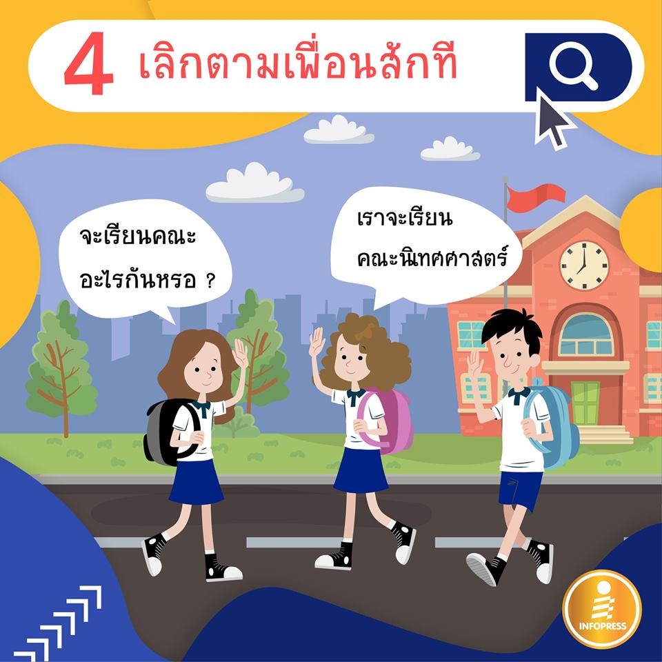 4. เลิกตามเพื่อนซักทีแม้ว่าเราจะรักเพื่อน คิดถึงเพื่อนมากแค่ไหนก็ตาม แต่ถ้าเลือกเรียนตามเพื่อน โดยที่เราไม่ถนัดคณะนั้นเลย เราก็จะไม่สามารถจบพร้อมเพื่อนได้นะคะ ดังนั้นอยากค้นหาตัวเองให้เจอเร็วๆ