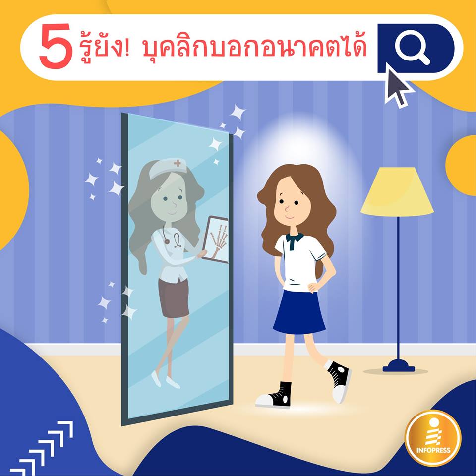 5. รู้ยัง! บุคลิกบอกอนาคตได้นะบุคลิกที่เหมาะสมในแต่ละอาชีพจะทำให้ทำงานได้ง่ายขึ้น ที่สำคัญคือทำให้เราทำงานอย่างมีความสุขด้วย ดังนั้นลองค่อยๆ ค้นหาความสุขของตัวเองให้เจอนะคะ