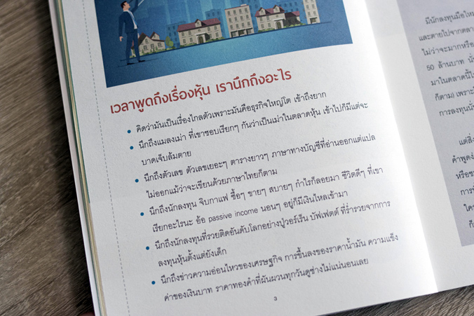 ในตลาดหุ้นมันต้องใช้ความรู้ ความเข้าใจ ถ้าใครเข้ามาแล้วเดาเอา ซื้อหุ้นอาศัยดวงและอารมณ์ล้วนๆ รับรองว่าอยู่ได้ไม่นานแน่ เพราะฉะนั้นคุณจะต้องเรียนรู้และเข้าใจในการลงทุนของธุรกิจ ไม่ว่าจะศึกษาจากการอ่านหนังสือ หาข้อมูลจากเว็บ หรือไปอบรม ก็แล้วแต่แบบไหนที่สะดวก
