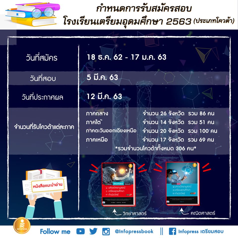 โรงเรียนเตรียมอุดมศึกษา ได้ออกตารางวันกำหนดการรับสมัครเข้าคัดเลือก ม.4 ปี 2563 และจำนวนที่รับสมัครเป็นที่เรียบร้อยแล้ว โดยในปีนี้เปิดรับจำนวนทั้งหมด 306 ที่นั่ง
