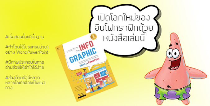 อินโฟกราฟิก ด้วย Word และ PowerPoint ในหนังสือจะบอกวิธีทำและรูปเมนูคำสั่งต่างๆทีละขั้นตอนอย่างละเอียดให้เรา