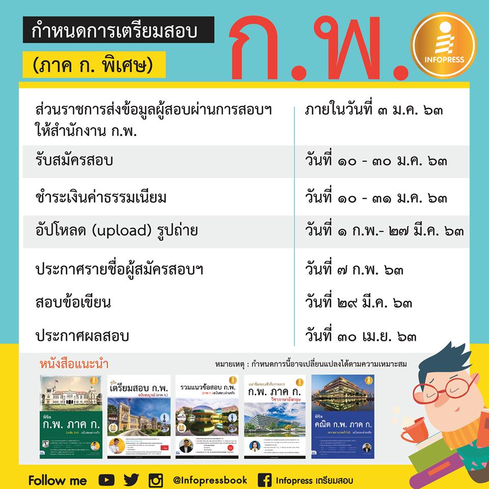 10 - 30 ม.ค.63 นี้ โดยผู้ที่สมัครรอบพิเศษรอบนี้ได้คือ ผู้ที่ผ่านภาค ข.ของ 3 หน่วยงานต่อไปนี้