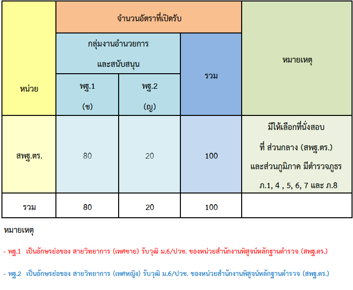 หน่วยสำนักงานพิสูจน์หลักฐานตำรวจ จำนวน 100 อัตรา