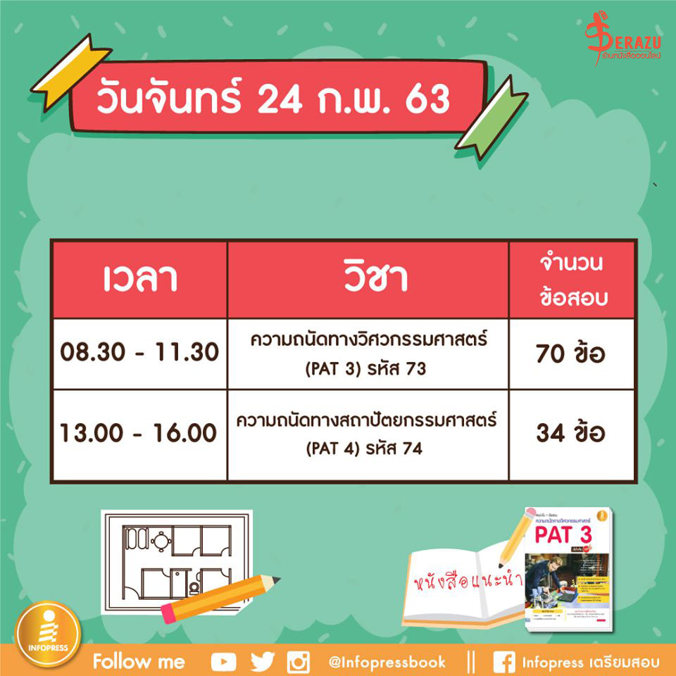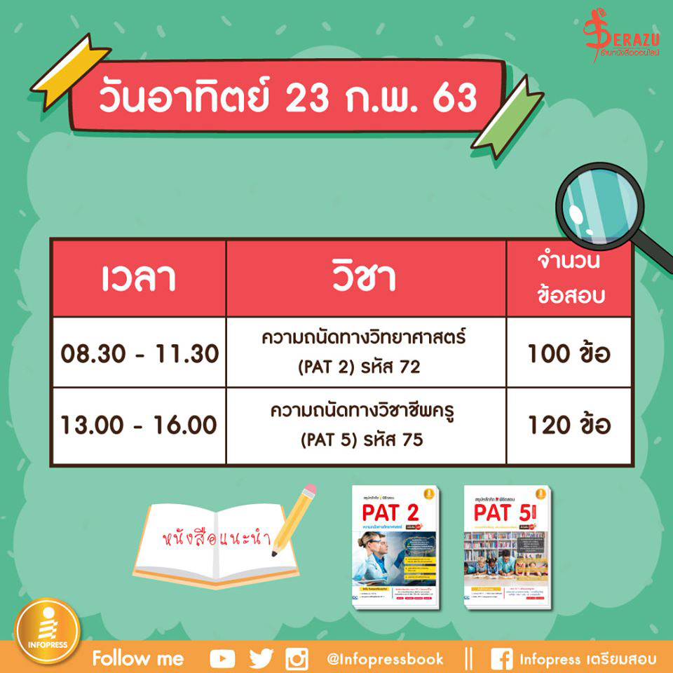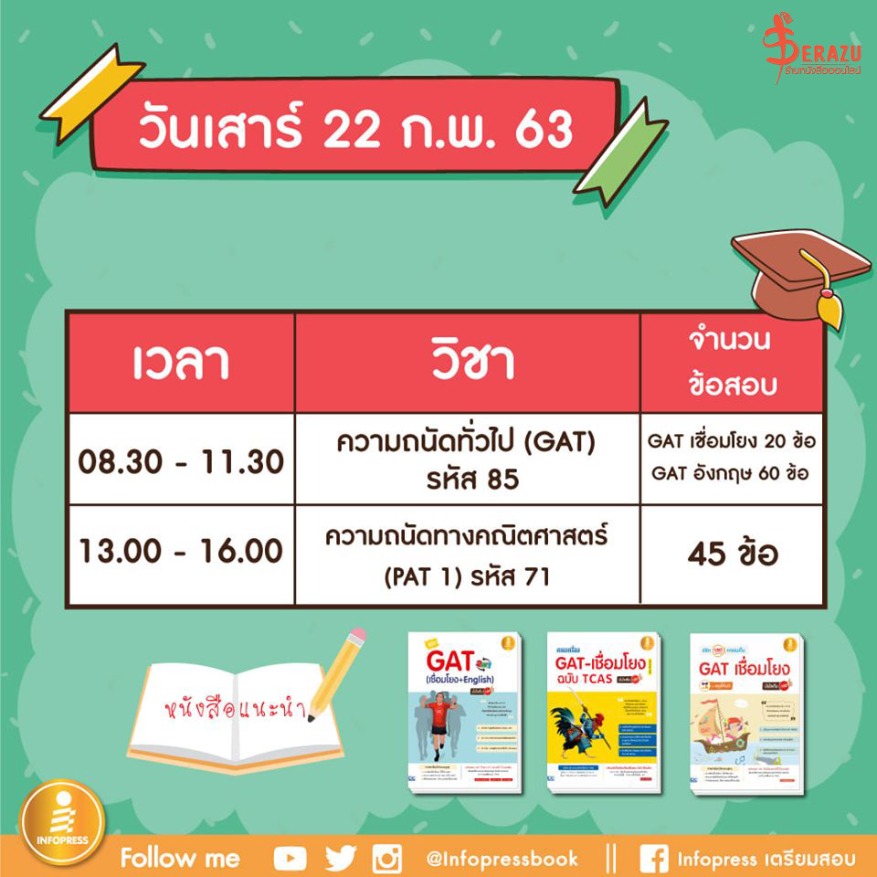 สนใจหนังสือเตรียมสอบ GAT/PAT หรือสั่งซื้อได้ที่ SERAZU