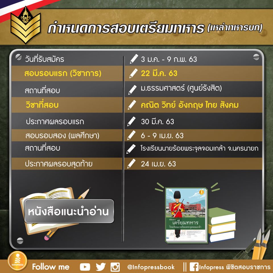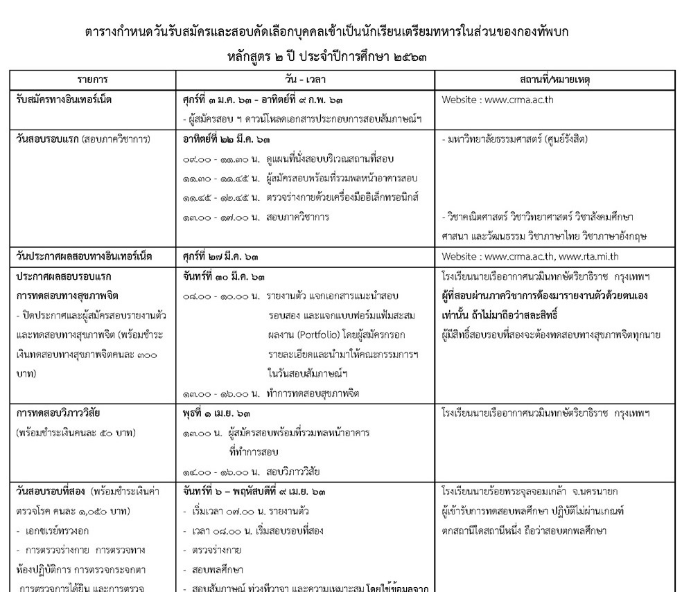 เตรีมทหาร โรงเรียนนายร้อยพระจุลจอมเกล้า แล้วทางอินเทอร์เน็ต ตั้งแต่วันนี้จนถึงวันที่ 9 กุมภาพันธ์ 2563