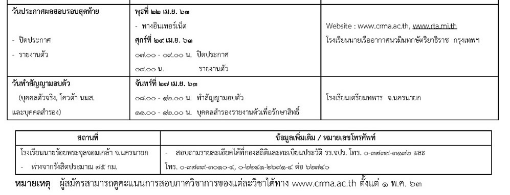 สถานที่สอบ : โรงเรียนนายร้อยพระจุลจอมเกล้า จ.นครนายก