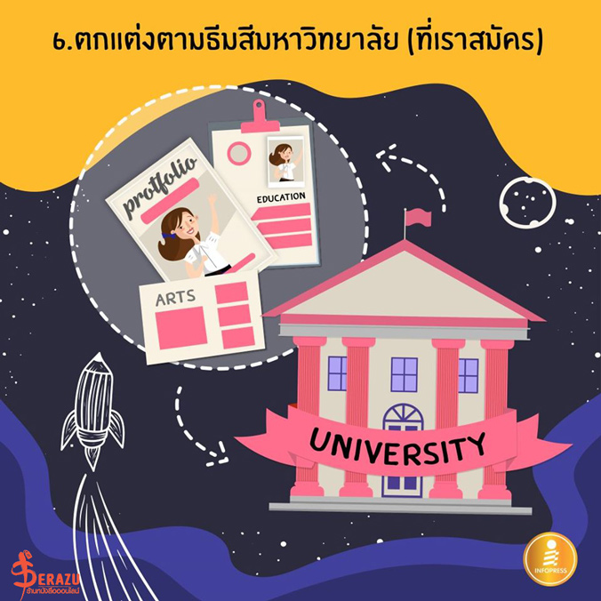 6. ตกแต่งตามธีมสีมหาวิทยาลัย (ที่เราสมัคร)