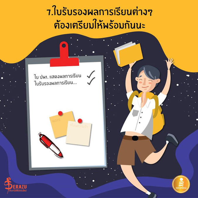 7. ใบรับรองผลการเรียนต่างๆต้องเตรียมให้พร้อม