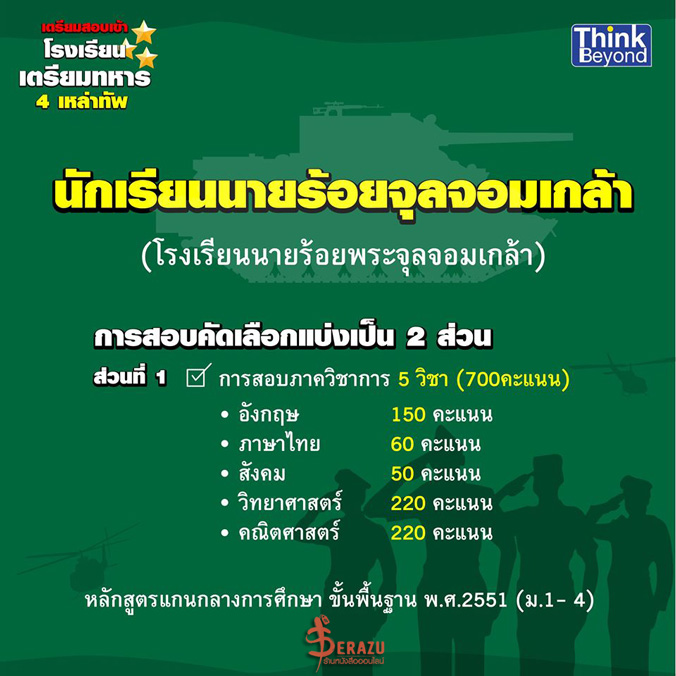 รายละเอียดเพิ่มเติมจากทางเว็บไซต์โรงเรียนนายร้อยพระจุลจอมเกล้า " คลิก "