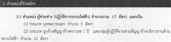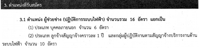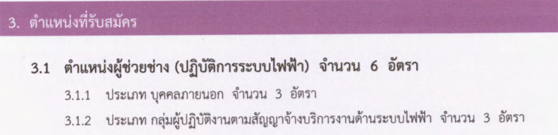 การไฟฟ้าส่วนภูมิภาค (PEA) สายงานการไฟฟ้า ภาค 3 มีความประสงค์จะรับสมัครสอบคัดเลือก บุคคลภายนอก ลูกจ้างสัญญาจ้างคราวละ 1 ปี และกลุ่มผู้ปฏิบัติงานตามสัญญาจ้างบริการงานด้านระบบไฟฟ้า เพื่อเข้าปฏิบัติงานในหน่วยงาน การไฟฟ้าเขต 1 (อยุธยา) ภาค 3, การไฟฟ้าเขต 2 (ชลบุรี) ภาค 3, การไฟฟ้าเขต 3 (นครปฐม) ภาค 3