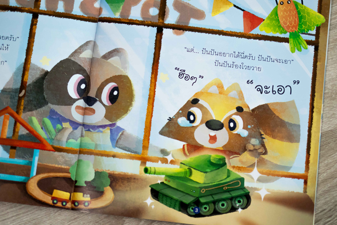 จุดเด่น1. เป็นหนังสือนิทานที่พัฒนาทักษะทางสังคม สอนให้เด็กๆรู้จักและเข้าใจอารมณ์ของตัวเองและผู้อื่น รู้วิธีจัดการกับอารมณ์โกรธ ผิดหวัง เสียใจ หรือไม่พอใจกับเรื่องใดๆ จนร้องไห้โวยวายออกมา และสามารถอยู่ร่วมกับอื่นได้อย่างมีความสุข