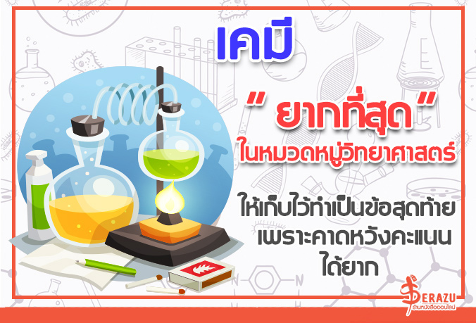 *ยากกว่าวิชาอื่นมาก ๆ รอทำท้ายสุดหลังจากคิดว่าเก็บวิชาอื่นไม่ได้แล้ว ข้อสอบศักยภาพถ้าไม่มีเวลาไม่ควรทำ วิชานี้ควรจะทำเป็นวิชาสุดท้าย จริงอยู่ที่มันมีคะแนนเท่ากับวิชาอื่น แต่มันยากกว่าวิชาอื่นแบบโคตร ๆ เลย ดังนั้นแนะนำให้เก็บมันไว้สุดท้าย โดยเฉพาะข้อสอบศักยภาพนี่ไม่คุ้มเลย ของเคมีอย่าไปยุ่งกับมันเลยดีกว่า