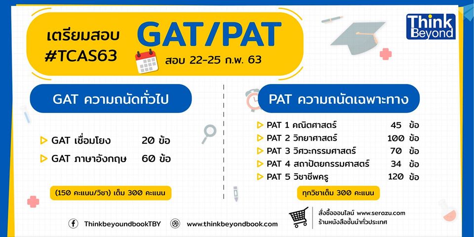 เตรียมสอบ GAT/PAT สอบวันที่ 22-25 ก.พ. 2563