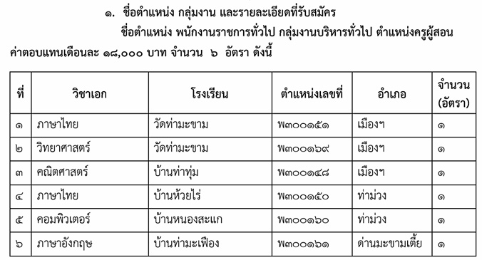 ประกาศ ! สพป.กาญจนบุรี เขต 1 เปิดสอบพนักงานราชการ ครูผู้สอน 6 อัตรา !!