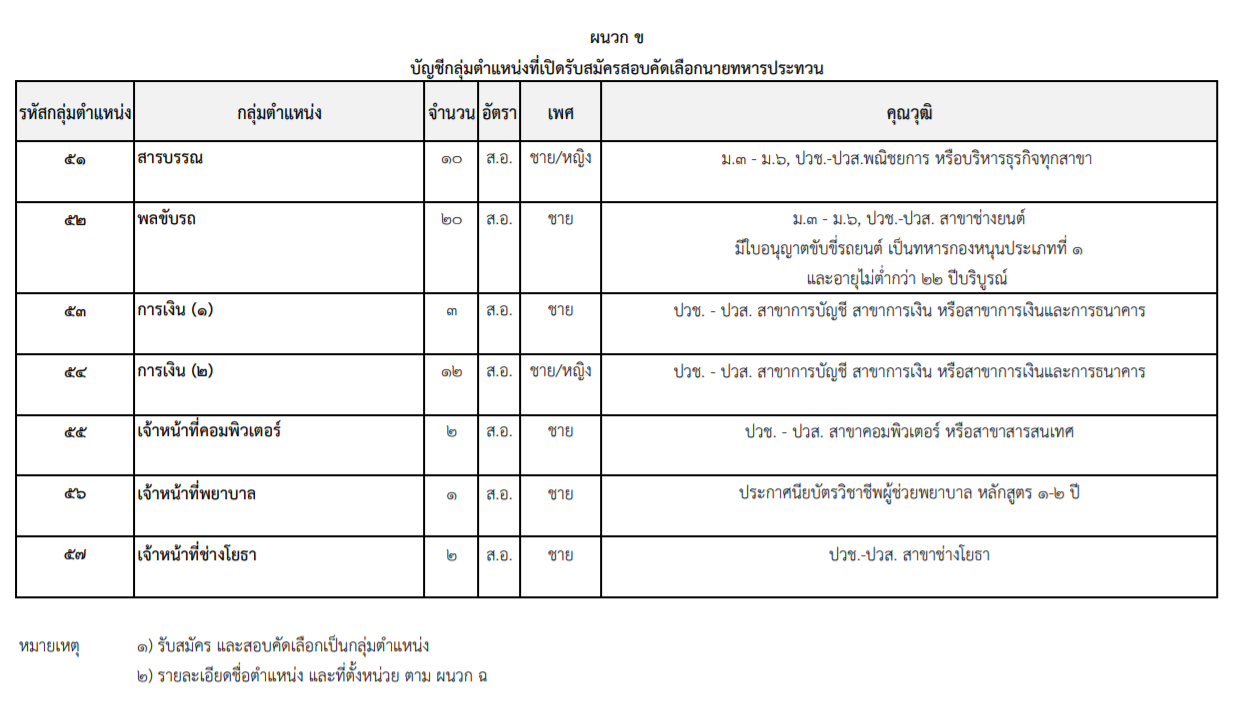 รายละเอียดตำแหน่งนายทหารประทวน