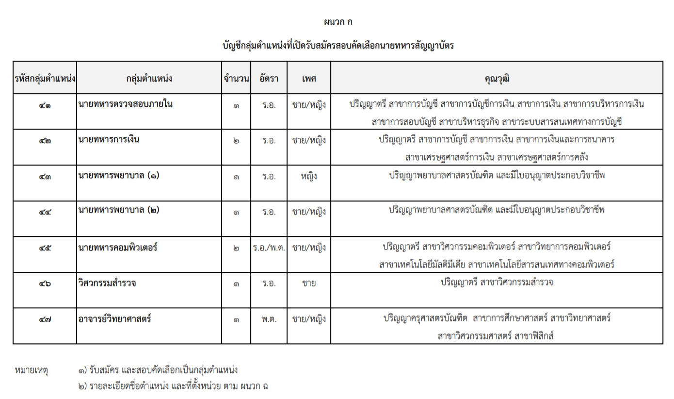 รายละเอียดตำแหน่งนายทหารสัญญาบัตร