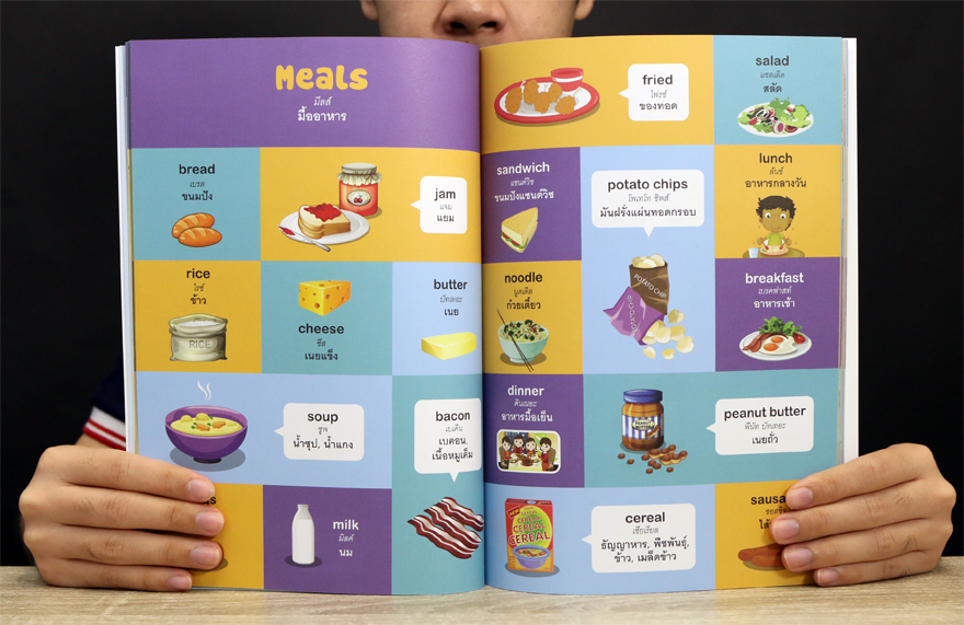 ภาพสอนศัพท์อังกฤษ รวบรวมคำที่ใช้บ่อยในชีวิตประจำวัน การเรียนและการสอบ เหมาะสำหรับ นักเรียนระดับประถมศึกษาเป็นต้นไป พจนานุกรมภาษาไทย-ภาษาอังกฤษฉบับรูปภาพนี้ถูกจัดทำขึ้นเพื่อ ผู้สนใจ โดยคำศัพท์ถูกแบ่งออกเป็นหมวดหมู่ต่างๆ 40 หมวด เพื่อให้ผู้ใช้งาน ที่ยังไม่รู้คำศัพท์สามารถศึกษาคำศัพท์ตามหมวดนั้นได้สะดวก