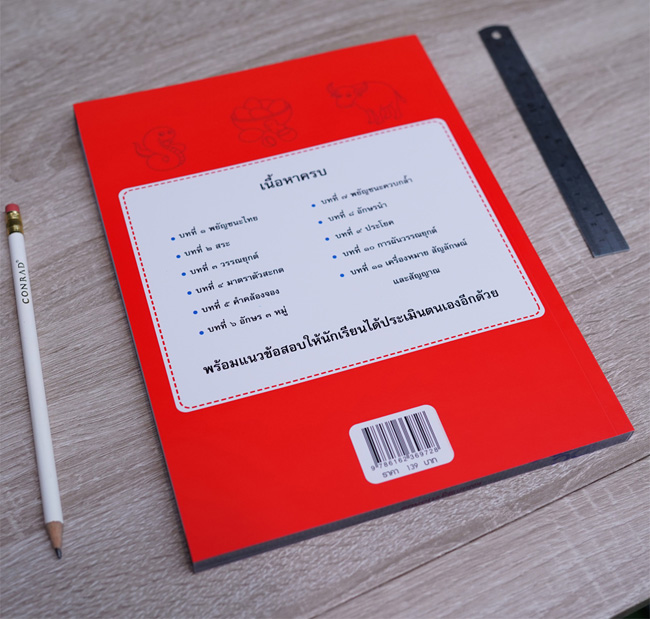 เนื้อหาและแบบฝึกหัดประกอบด้วยเรื่อง พยัญชนะไทย สระ วรรณยุกต์ มาตราตัวสะกด คำคล้องจองอักษร ๓ หมู่ พยัญชนะควบกล้ำ อักษรนำ ประโยค การผันวรรณยุกต์ เครื่องหมาย สัญลักษณ์ และสัญญาณ พร้อมแนวข้อสอบให้นักเรียนได้ประเมินตนเองอีกด้วย