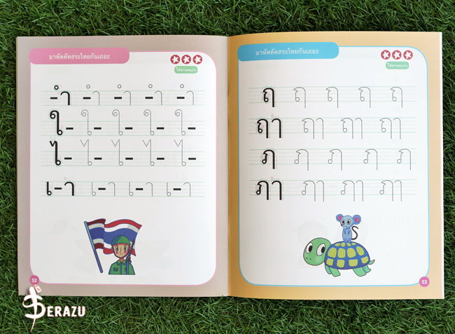 สนุกสนานกับการคัดตามรอยเส้นประ พยัญชนะไทยทั้ง 44 ตัวอักษรพร้อมด้วย สระ และวรรณยุกต์ นอกจากนี้การหัดคัดยังช่วยฝึกสมาธิ ความอดทน กล้ามเนื้อมัดเล็ก แถมยังเป็นการใช้เวลาว่างให้เกิดประโยชน์อีกด้วย